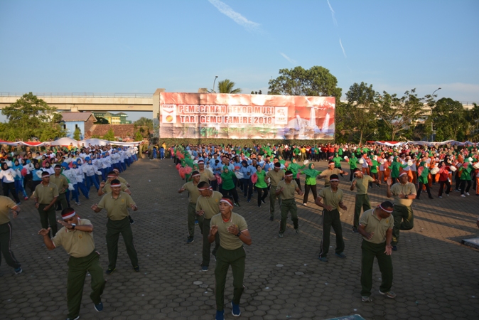 Sebanyak 8.671 peserta dari jajaran Korem 044/Gapo turut serta dalam pemecahan rekor Museum Rekor Indonesia (MURI) Tari Gemu Famire secara kolosal dalam rangka memperingati HUT TNI ke-73 tahun 2018 yang dilaksanakan secara tersebar di wilayah Korem 044/Gapo pada Selasa (4/9/2018) pagi pukul 07.00 WIB.
