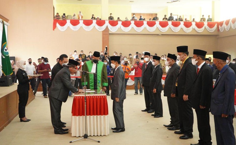 Muaraenim,Halosumsel- “Selamat  dan sukses kepada 8 (delapan) Pengganti Antar Waktu (PAW) Anggota Dewan Perwakilan Rakyat Daerah (DPRD) Kabupaten (Kab.) Muara Enim atas nama Muhammad Nasir, Yudi Erika, Syuryadi, Ajis, Lusi Suryadi, Zulharman, Gatot Susilo dan Mat Suron yang telah dilantik menjadi Anggota DPRD Kab. Muara Enim sisa masa jabatan 2019-2024 oleh Wakil Ketua I DPRD Kab. Muara Enim Ermanadi, semoga Saudara-saudari sekalian dapat segera menjalankan tugas sesuai dengan tugas dan kewenangan yang telah diamanahkan oleh konstitusi dan dapat menyelenggarakan urusan pemerintahan dengan sebaik-baiknya menurut asas Otonomi dan Tugas Pembantuan.”
