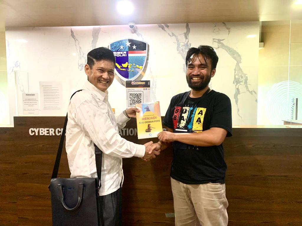Setelah diperiksa Wina Armada menyerahkan buku karyanya yang berjudul “Menjadi Ahli Dewan Pers” kepada penyidik siber Bareskrim Polri***