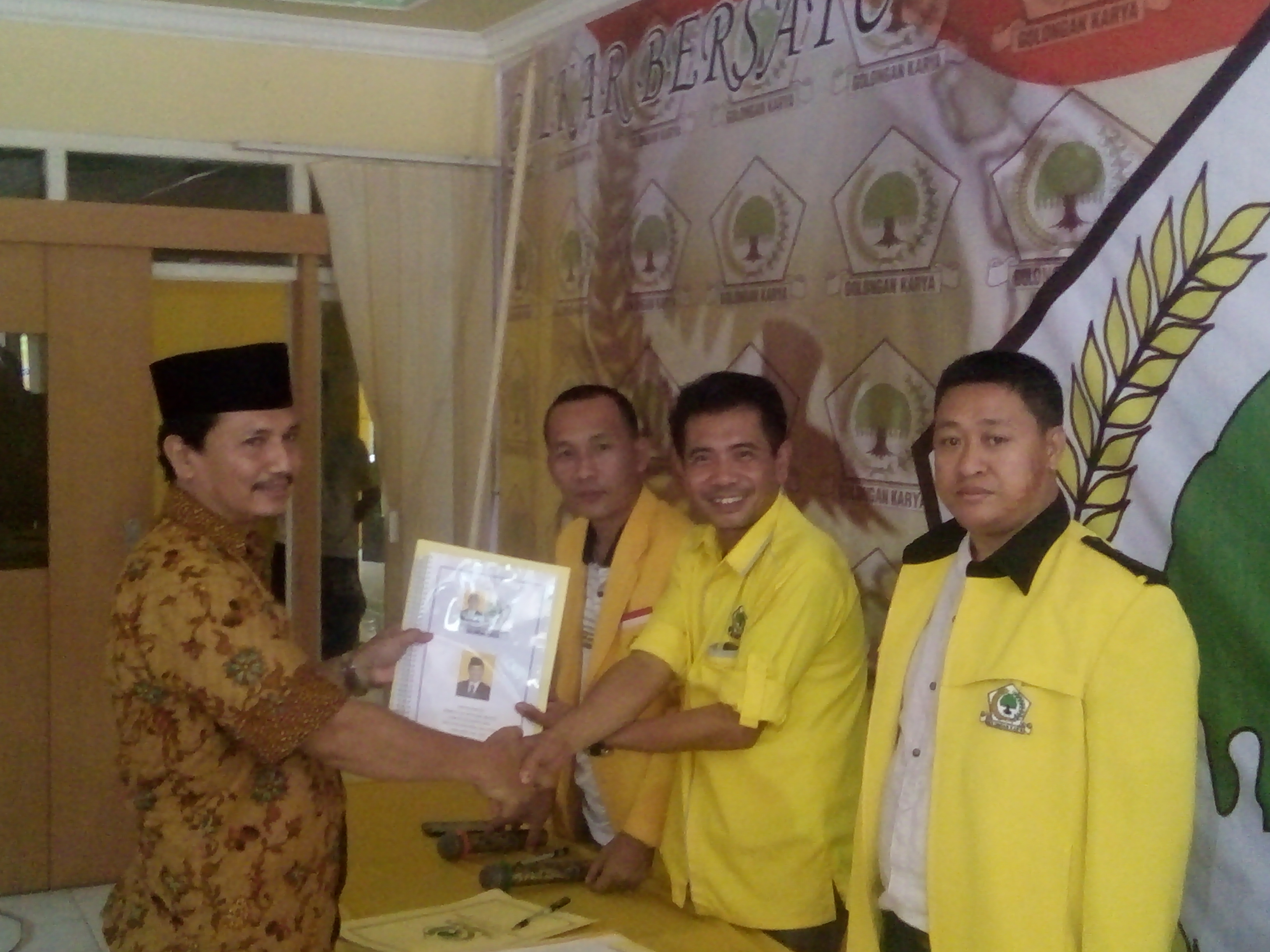 Ahmad Basuki yang merupakan ketua Perkumpulan Masyarakat Transmigrasi (PERMATA) bersama timnya kembalikan formulir Bakal Calon Wakil Bupati Banyuasin di DPD Partai Golkar Banyuasin .Jumat (14/7/2017).