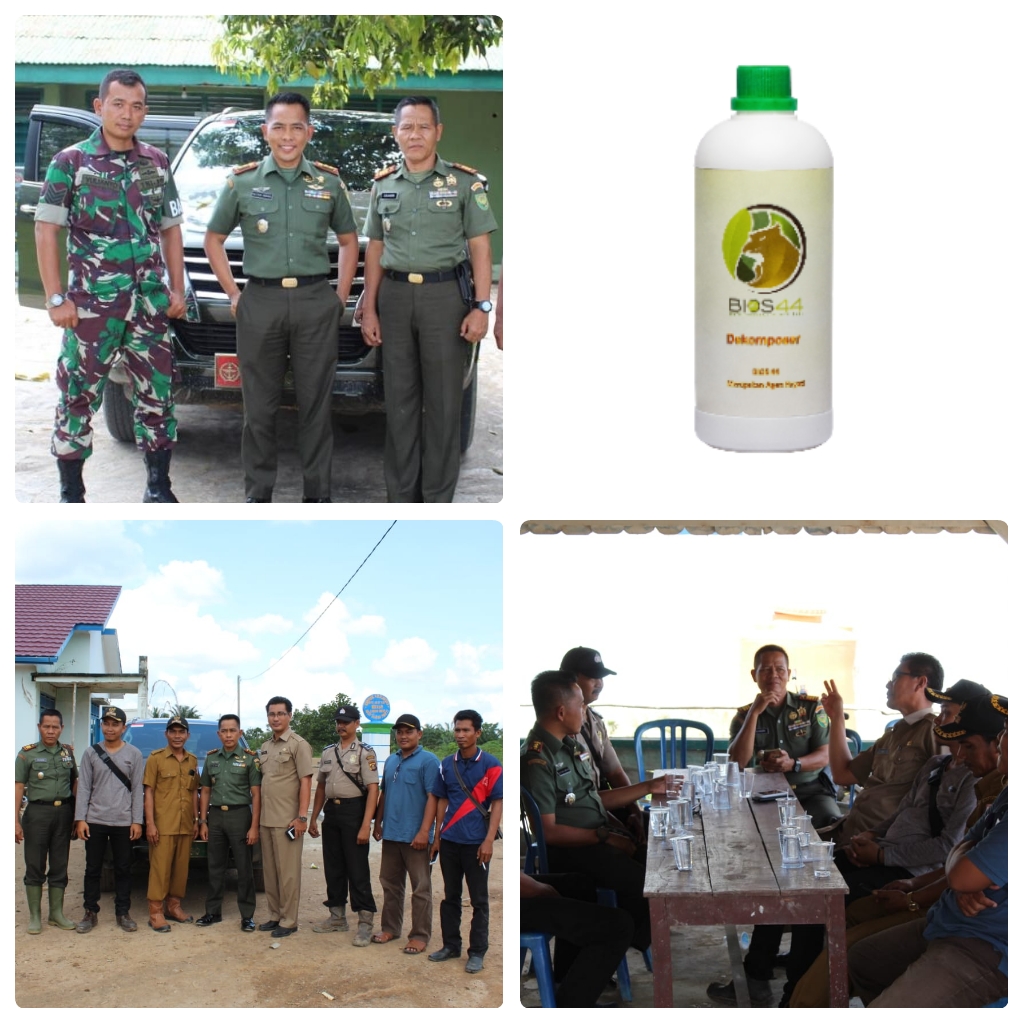 Dandim 0430/Banyuasin mencoba memberikan solusi dengan memperkenalkan dan mensosialisasikan *Bios44* kepada beberapa orang Kepala Desa Kec. Pulau Rimau dan para petani, *Bios44 merupakan Produk andalan Army Team Korem 044/Gapo dalam membantu masyarakat petani di wilayah Sumsel*. Bios44 merupakan hasil campuran Micro organisme yang digabungkan dengan beberapa bahan lainya, berguna untuk menghasilkan Bakterì yang mampu terurai untuk menyuburkan tanah, menggemukan peternakan sapi, memaksimalkan hasil tambak ikan dan banyak lagi manfaat lainnya bagi petani.