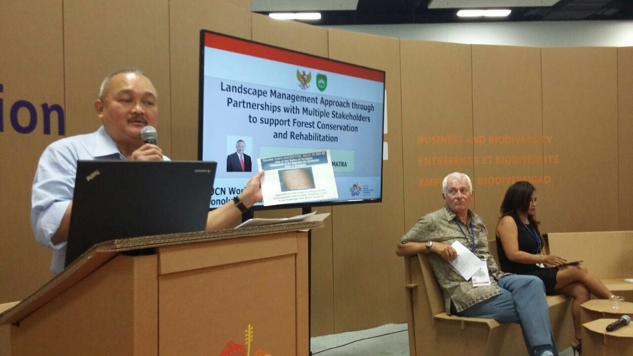 Gubernur Sumatera Selatan H. Alex Noerdin memaparkan sebuah paradigma baru tentang Sustainable Landscape Manajemen di Sumatera Selatan, dihadapan para peserta IUCN WCC di Hawaii, Senin (5/9) kemarin.