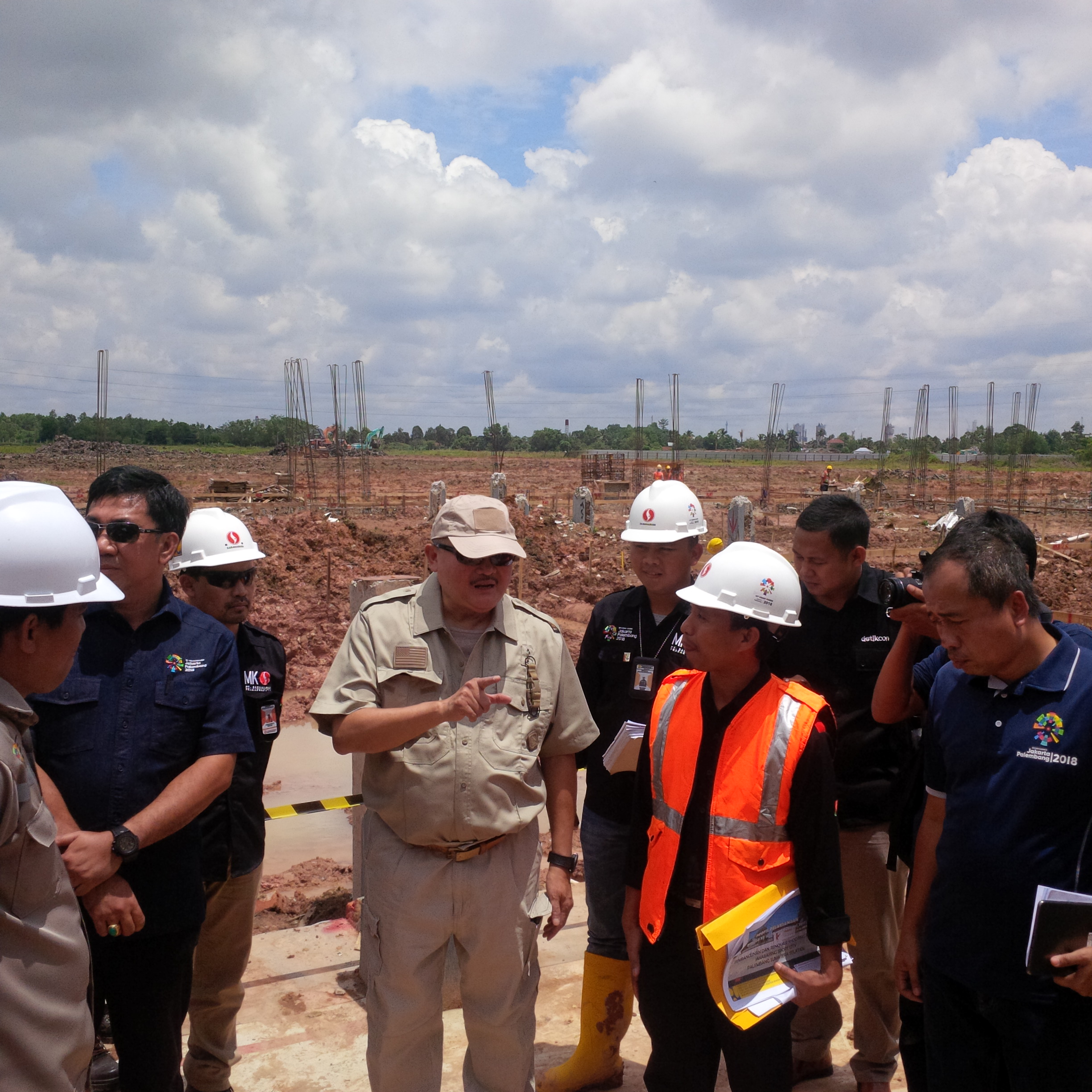 Pertama kali Alex Noerdin dan rombongan meninjau progress shooting range, disini Alex merasa sangat kagum dengan pekerja yang melakukan tiang pancang