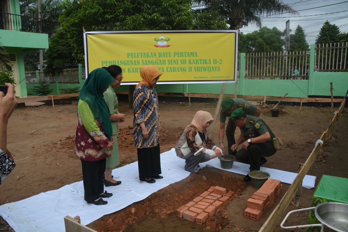Ketua Persit KCK PD II Sriwijaya Ny. Annies Putranto, didampingi Wakil Ketua Ny. Arnida Marga Taufiq beserta para pengurus Persit KCK PD II/Swj, melakukan kunjungan kerja (kunker) ke Sekolah SD Kartika II – 2 Yayasan Kartika Jaya Cabang II/Swj, Jalan Basuki Rahmat 20 Ilir, Palembang, Kamis (7/12/2017). Dalam kunjungan ini, Ny. Annies Putranto melakukan peletakan batu pertama Pembangunan Sanggar Seni SD Kartika II – 2 Palembang yang disaksikan juga oleh Irdam II/Swj Kolonel Czi Rido Hermawan, M. Sc., beserta Staf Irdam Letkol Inf Ade.