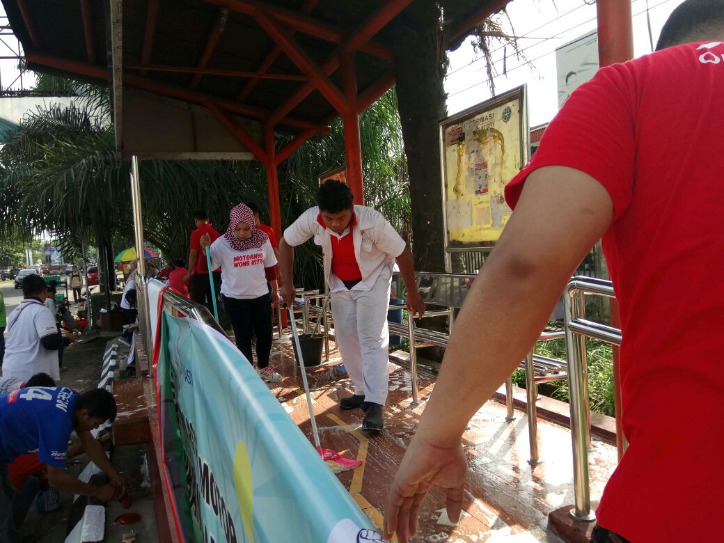 Halteku Bersih, Halteku Nyaman”, puluhan karyawan Astra Motor Sumsel turun langsung mensukseskan kegiatan sosial ini seperti pengecetan halte, pengepelan lantai halte sampai membersihkan lingkungan sekitar halte. (18/11)