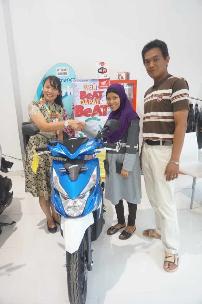 Program Beli BeAT Dapat BeAT telah berlangsung dari bulan September lalu dan telah dilakukan pengundian untuk periode pertama di Oktober lalu. Kali ini, Astra Motor Sumsel selaku main dealer Honda kembali menyediakan 2 unit motor Honda BeAT untuk 2 konsumen Honda yang beruntung.