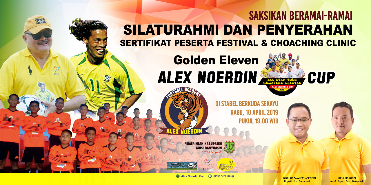 Setelah mengikuti rangkaian coaching clinic Alex Noerdin (AN) Cup 2019 pada 11 Maret lalu, akhirnya tim pelaksana AN Cup 2019 pada hari ini Rabu (10/4/2019) akan membagikan sebanyak 450 sertifikat AN Cup 2019 kepada peserta asal Muba yang langsung ditandatangani oleh pemain sepakbola terbaik dunia asal Samba Brazil yakni Ronaldinho di Stable Berkuda Sekayu pada pukul 19.00 WIB.