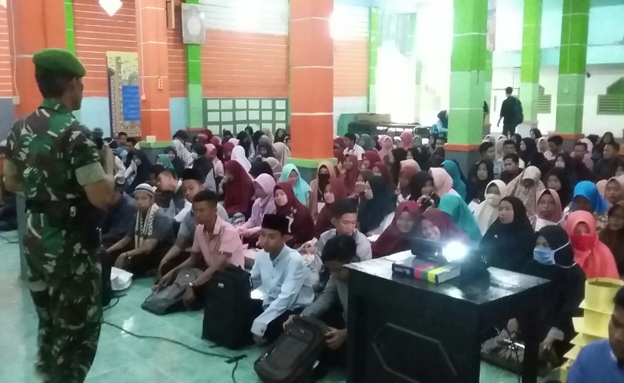 Bintara Pembina Desa (Babinsa) dari Koramil 402-07/Indralaya Kodim 0402/OKI Pelda Suharjo, pada hari Kamis (14/2/2019) memberikan materi Wawasan Kebangsaan (Wasbang) dan Bela Negara kepada Santriwan dan Santriwati Pondok Pesantren Al-Ittifaqiah Indralaya Kab. Ogan Ilir.