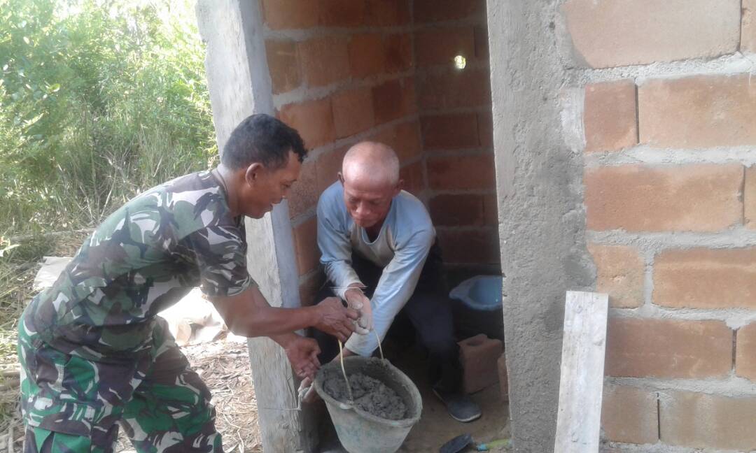 Serma Sudirman Babinsa Desa Mentawak Kecamatan Kelapa Kampit membangun jamban untuk masyarakat. (Selasa 30/5/17)