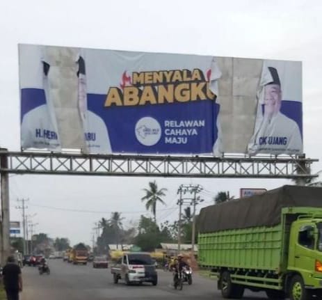 Baleho pasangan bakal calon gubernur petahana, Herman Deru dan Cik Ujang (HD-CU) dirusak akibat aksi vandalisme oleh tangan oknum yang tidak bertanggung jawab.