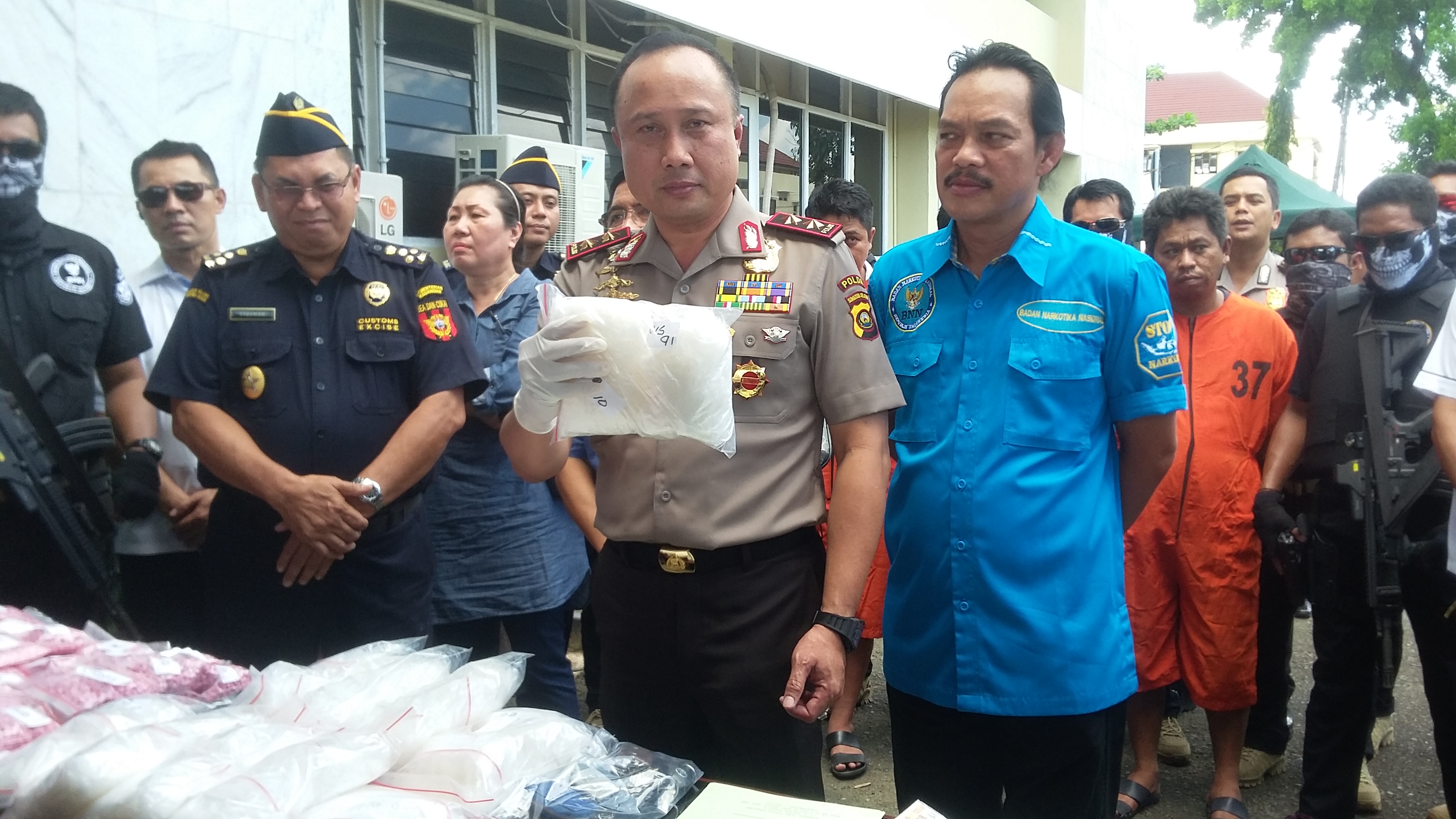Kapolda Sumatera Selatan, Irjen Pol Agung Budi Martoyo MSi didampingi Deputi Pemberantasan BNN, Irjen Pol Arman Depari mengatakan, tangkapan ini merupakan pengembangan dari tersangka sebelumnya berinisial AA, E, K, D dan HP yang sudah ditembak mati.