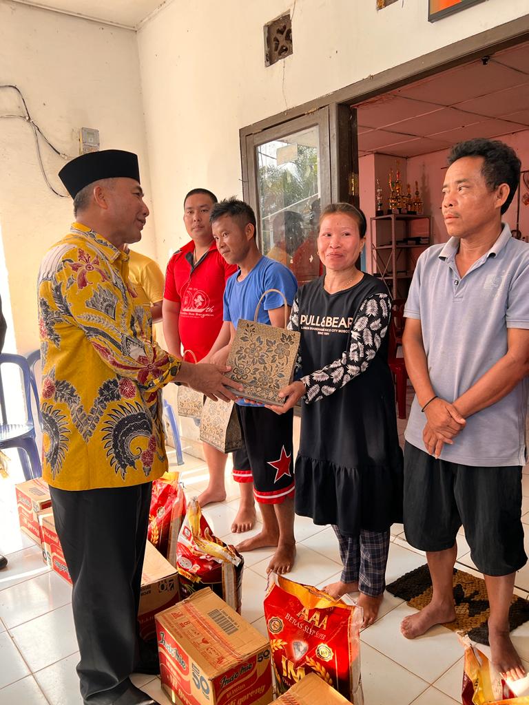 Pj Bupati dalam menyalurkan bantuan kepada warga korban kebakaran, turut didampingi pihak BPBD Muba dan Dinas Sosial (Dinsos) dan Camat Batanghari Leko.