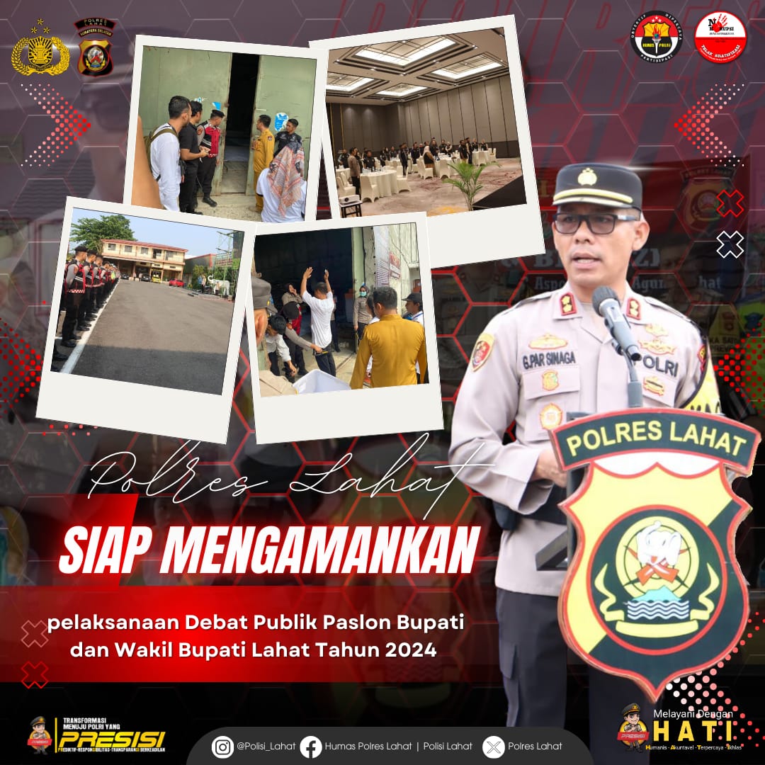 Polres lahat, bersinergi dengan Kodim 0405 lahat, Pemda lahat, dan Instansi terkait, memastikan keamanan serta ketertiban pelaksanaan Debat Publik yang sudah kami persiapkan pengamanan dengan matang ( berlapis ) serta menerjunkan personel untuk melakukan penyekatan di setiap lini, tempat dan waktu pelaksanaan Debat.