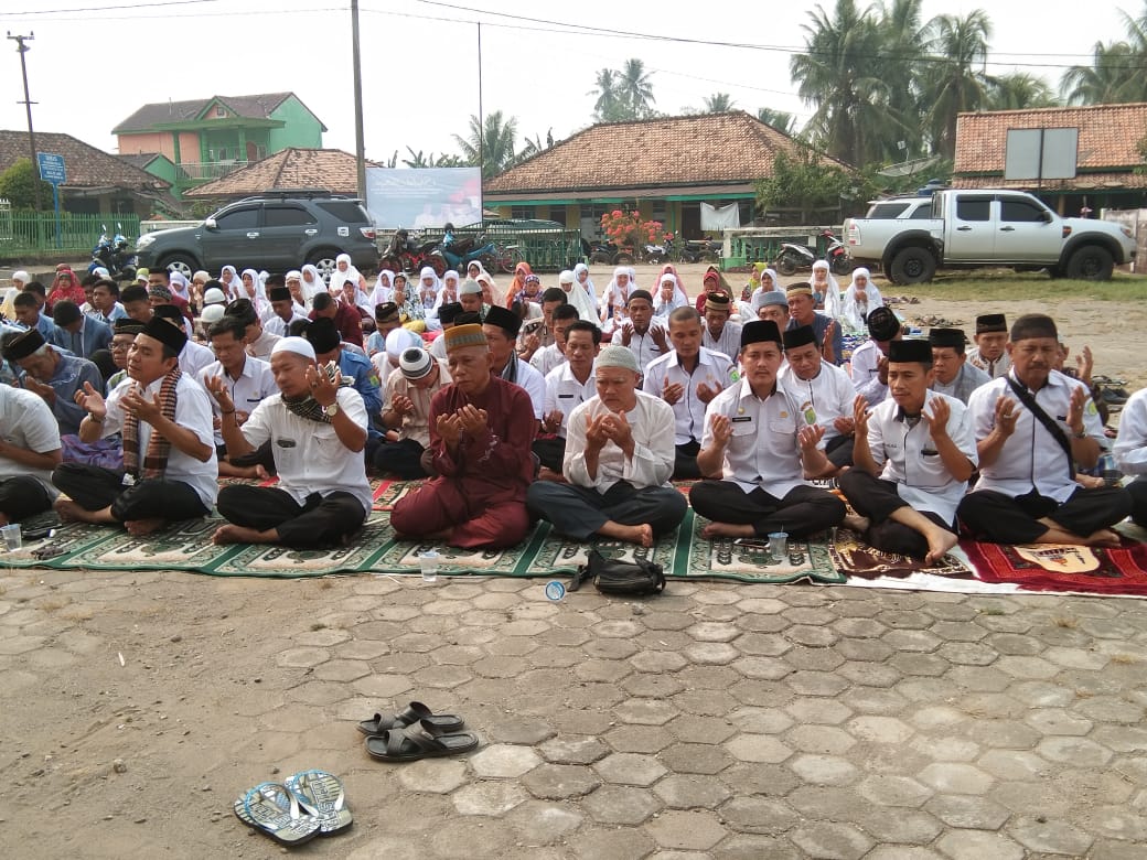 Musim Kemarau dan Kabut Asap yang menyelimuti sebagai wilayah Kabupaten Musi Banyuasin (Muba) membuat Masyarakat Muba khususnya Kecamatan Babat Toman Kabupaten Muba menggelar salat istisqo di Masjid Jami Kelurahan Mangun Jaya, Senin Pagi (23/9/2019).