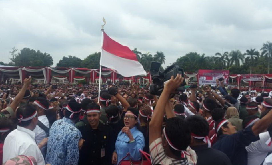 Panglima TNI Jendral Gatot Nurmantyo, mengintruksi kepada seluruh indonesia, agar berkumpul dan bersatu pada 30 November, yang tepatnya jatuh pada hari ini. serta tantangan lain kedepannya, beliau mengajak kita semua untuk bersatu di lapangan dengan mengikatkan pita merah putih di kepala, sebagai simbolis kekuatan dan persatuan indonesia”, ujar Danrem 042/Gapu Kolonel Inf Refrizal.