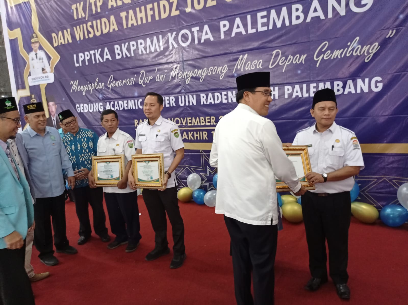 Palembang, Halosumsel- Lembaga Pembinaan dan Pengembangan Taman Kanak-kanak Al- Quran (LPPTKA) Badan Koordinasi Pemuda Remaja Masjid Indonesia (BKPRMI) Kota Palembang menggelar Wisuda santri TK/ TPA angkatan XIX dan wisuda Tahfidz Juz 30 angkatan II berteplmpat di gedung Academic Center Universitas Islam Negeri (UIN) Raden Fatah Palembang, Rabu (8/11/2023).