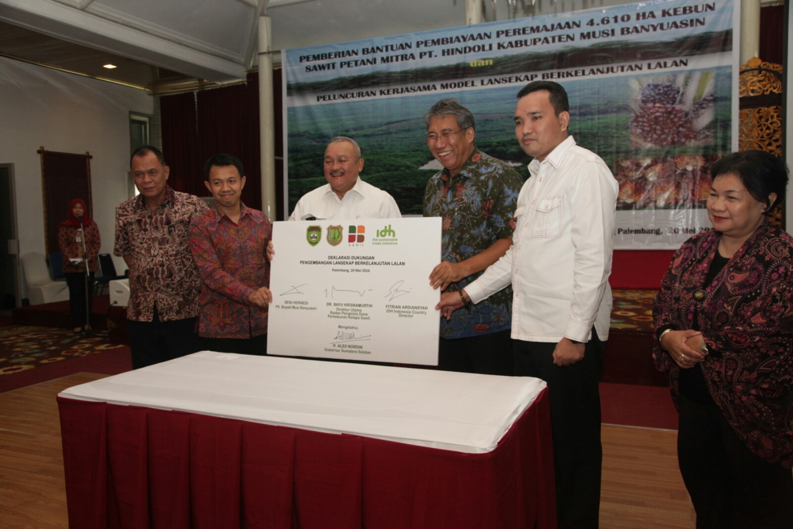 Dengan adanya MOu ini maka, daerah Musi Banyuasin menjadi perintis peremajaan lahan sawit berkelanjutan di Indonesia yang menggunakan model baru. Selanjutnya Bupati Muba menetapkan Kecamatan Lalan Kabupaten Muba yang didukung oleh lembaga donor dan non government organization (NGO) dunia, IDH Sustainable diplot menjadi pilot project pengelolaan lanskap berkelanjutan atau dimaksudkan dengan bentang alam dan sekitarnya itu akan dijaga kelestariannya.