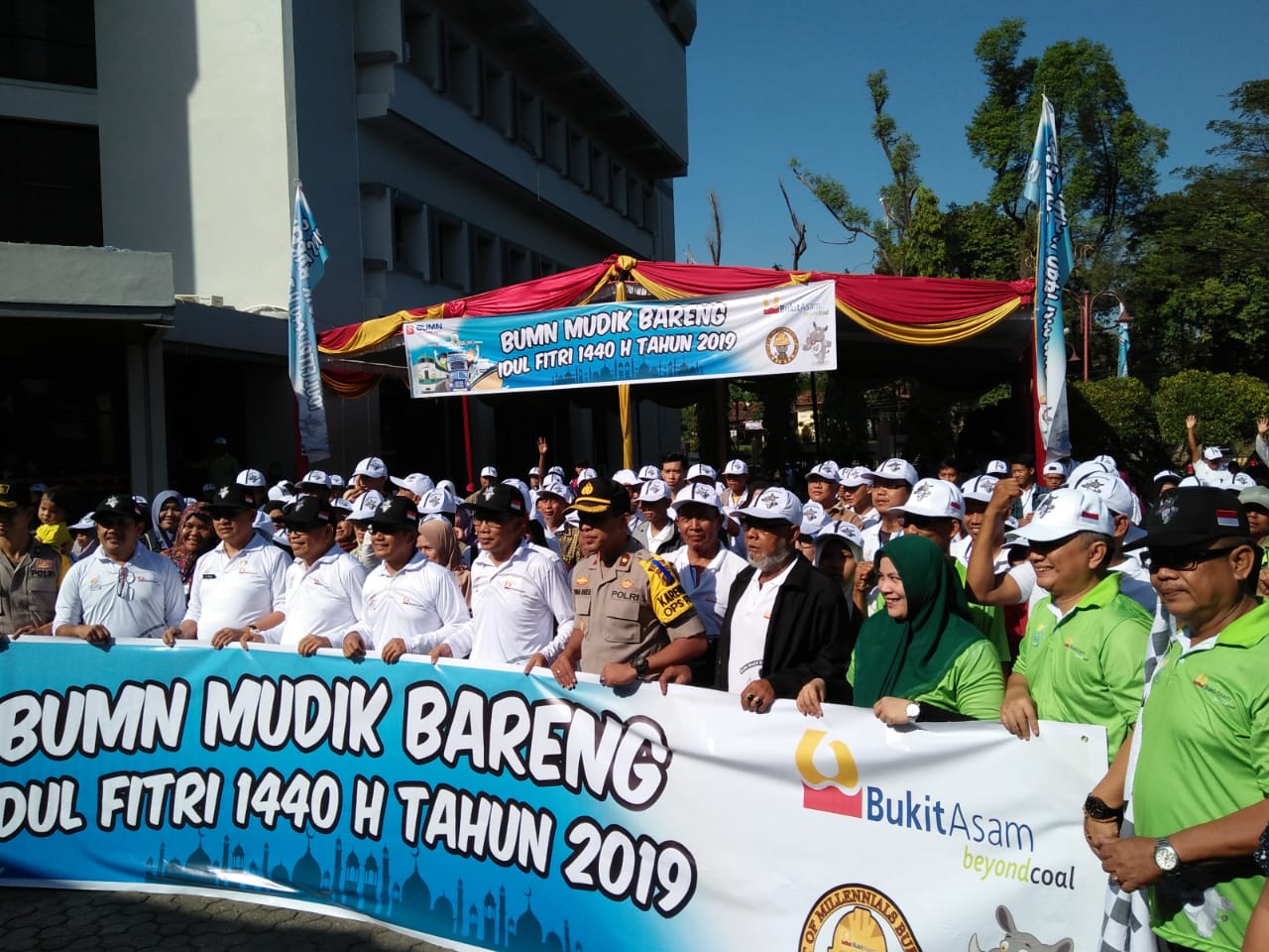 Peserta Mudik bareng ini terdiri dari karyawan dan masyarakat yang ada di ring 1 perusahaan PT BA Tbk Tanjung Enim Kecamatan Lawang Kidul Muara Enim yang pada pagi ini di lepas oleh Wakil bupati Muara Enim H Juarsah didampingi Direktur Produksi PT BA Tbk Suryo Eko berlangsung di Kompleks perkantoran PT BA Tanjung Enim (39/5/19)