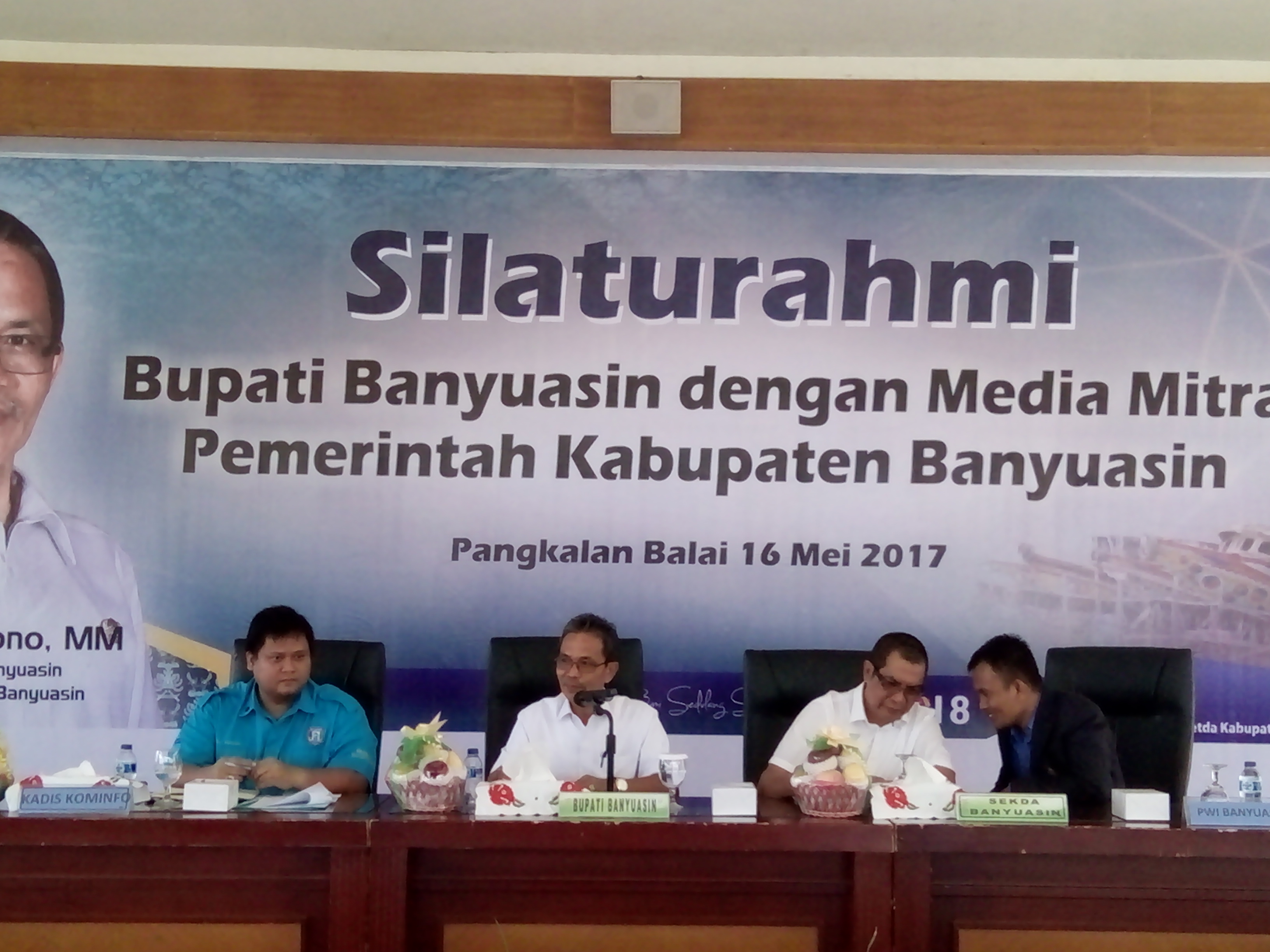 Hadir dalam acara tersebut, SA Supriyono selaku Plt Bupati Banyuasin, Sekda Firmansyah, Kadis Kominfo Erwin Ibrahim, Ketua PWI Banyuasin, OPD di Kabupaten Banyuasin serta Pimpinan Media dan wartawan yang menjadi mitra Pemerintah Kabupaten Banyuasin.(Topik)