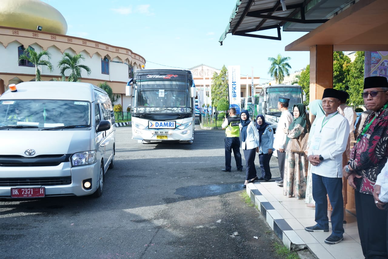 Asahan, Halosumsel – Bupati Asahan, Sumut, H Surya BSc, melepas keberangkatan Jamaah Calon Haji Kelompok terbang (Kloter) 3 yang berasal dari Kabupaten Asahan, Kabupaten Karo dan Kota Medan.