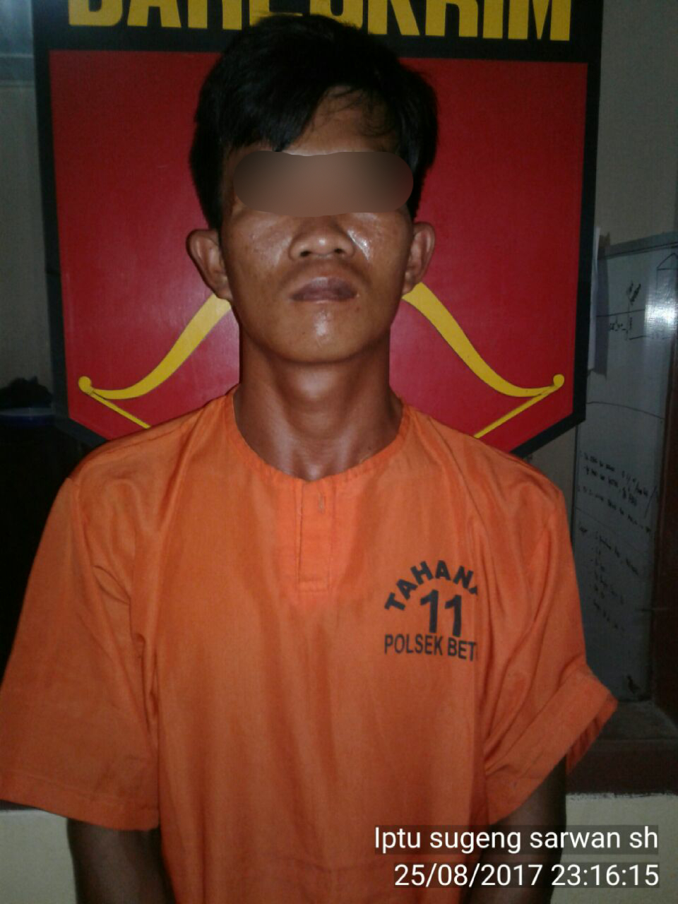 Selanjutnya para korban melaporkan ke Polsek Betung. Mendapatkan laporan tersebut langsung dilakukan Penyelidikan dan akhirnya Jumat (25/8/2017) sekira jam.16.30 wib mendapat informasi pelaku pencurian dengan tsk FRIYONO yang melakukan pencurian sedang ada dikediamannya,”ungkapnya