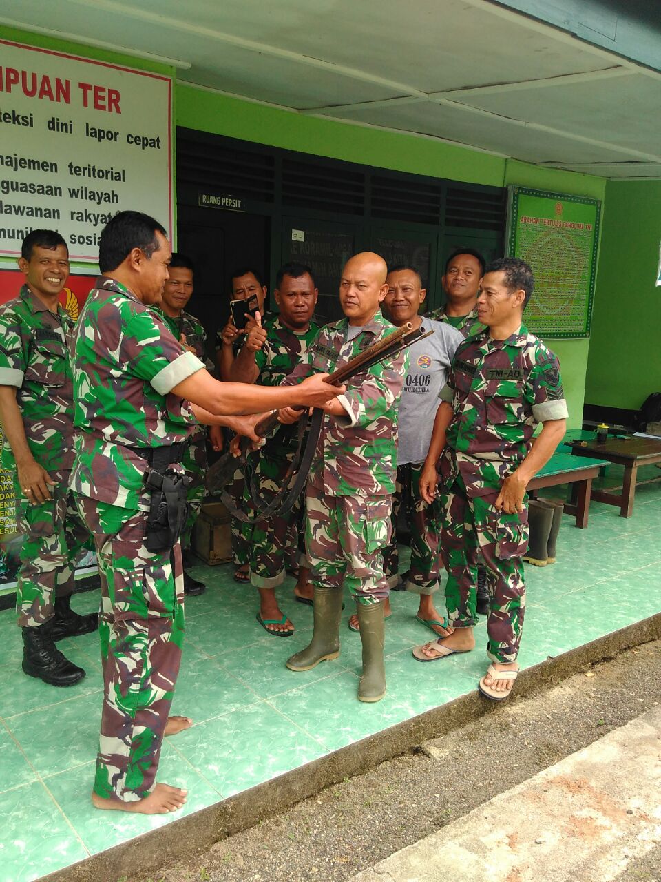 Penyerahan dua pucuk Senpira laras panjang tersebut dilakukan oleh masyarakat dengan kesadaran sendiri dengan mendatangi Babinsa Serda Syaidina Umar di kediamannya dan selanjutnya dibawa ke kantor Koramil 406-04/Muara Lakitan.