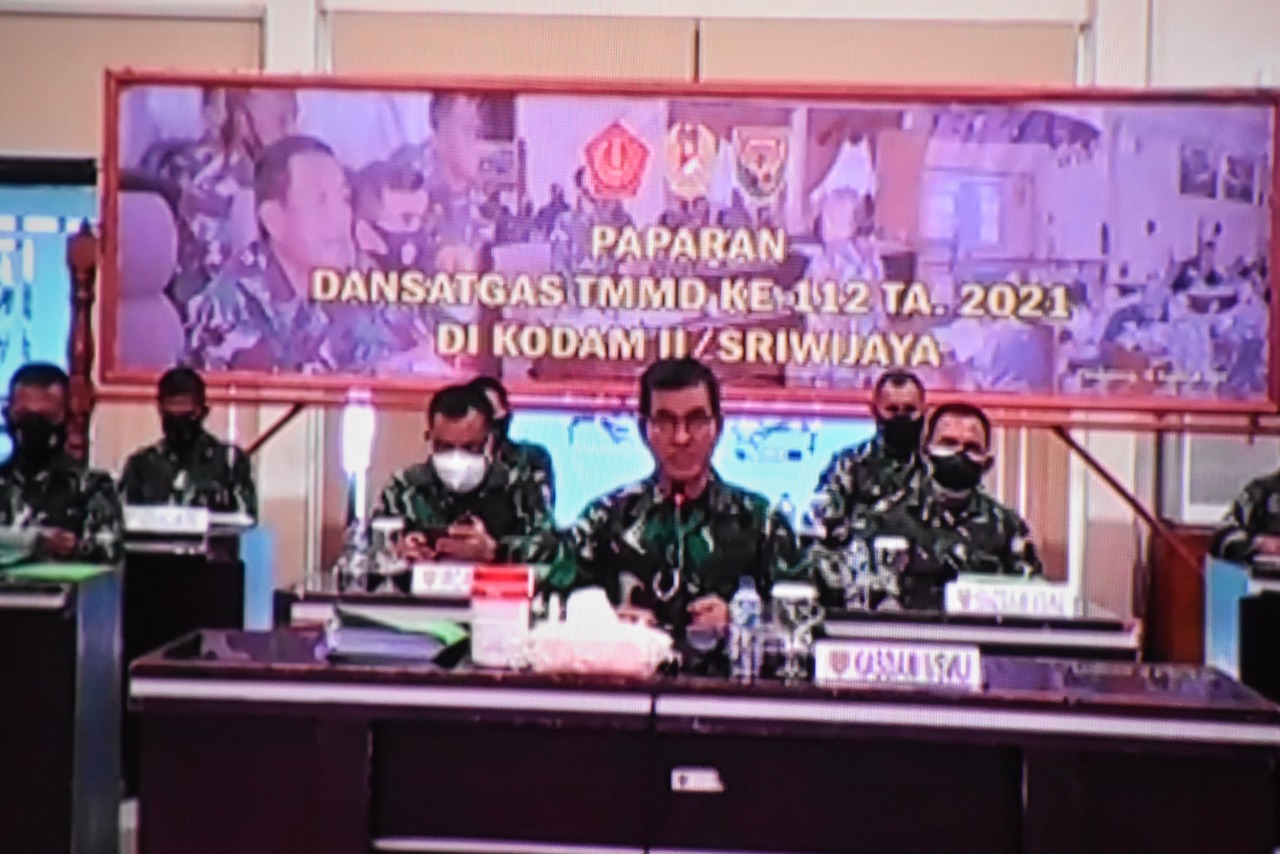 Sementara itu secara vidcon Dandim 0406/Lubuklinggau selaku Dansatgas TMMD Ke -112 memaparkan untuk wilayah Kodim 0406/Lubuklinggau, segala sesuatu terkait kesiapannya dalam menyelenggarakan kegiatan TMMD tahun 2021.