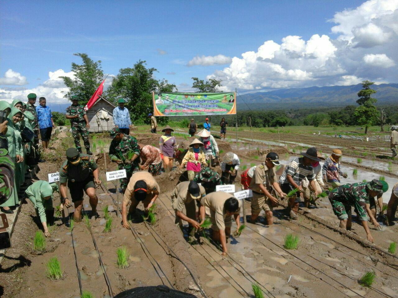 Dandim 0401/Muba Letkol Inf Ignatius Wiwoho dampingi Kadistan TPH Provinsi. Sumatera melaksankan tanam padi perdana, di Muara Telang Kabupaten Banyuasin 22/9/2016.