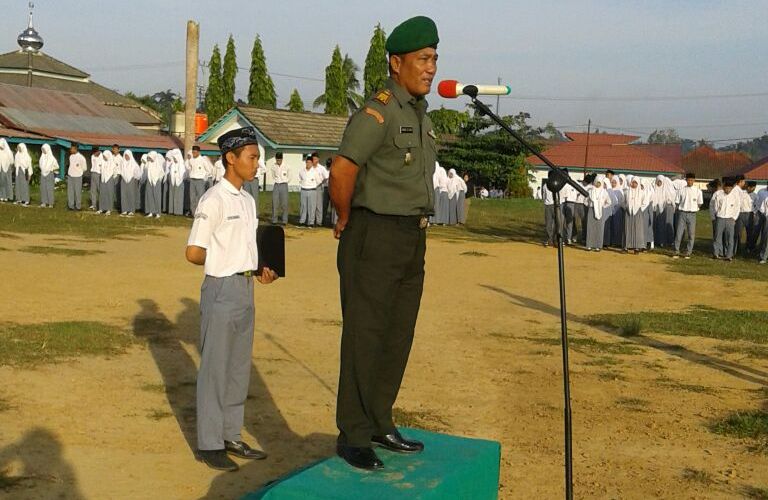 Kapten Daniel menyampaikan sambutannya pada Upacara Tentang Persataun dan kesatuan bangsa, Tentang bingkai NKRI yang harus di jaga dan dioerjuangkan oleh generasi muda bangsa dan Menjaga serta mempertahankan adat dan budaya bangsa Insonesia agar jangan kita lupakan dan dipertahankan antara lain sifat ramah tamah, sifat musyawarah untuk mufakat dan sifat gotong royong karena itulah budaya asli nenek moyang kita.Papar Danramil 14 seijin Dandim 0413 Bangka Letkol Inf Daniel Lumbanraja(Rh)