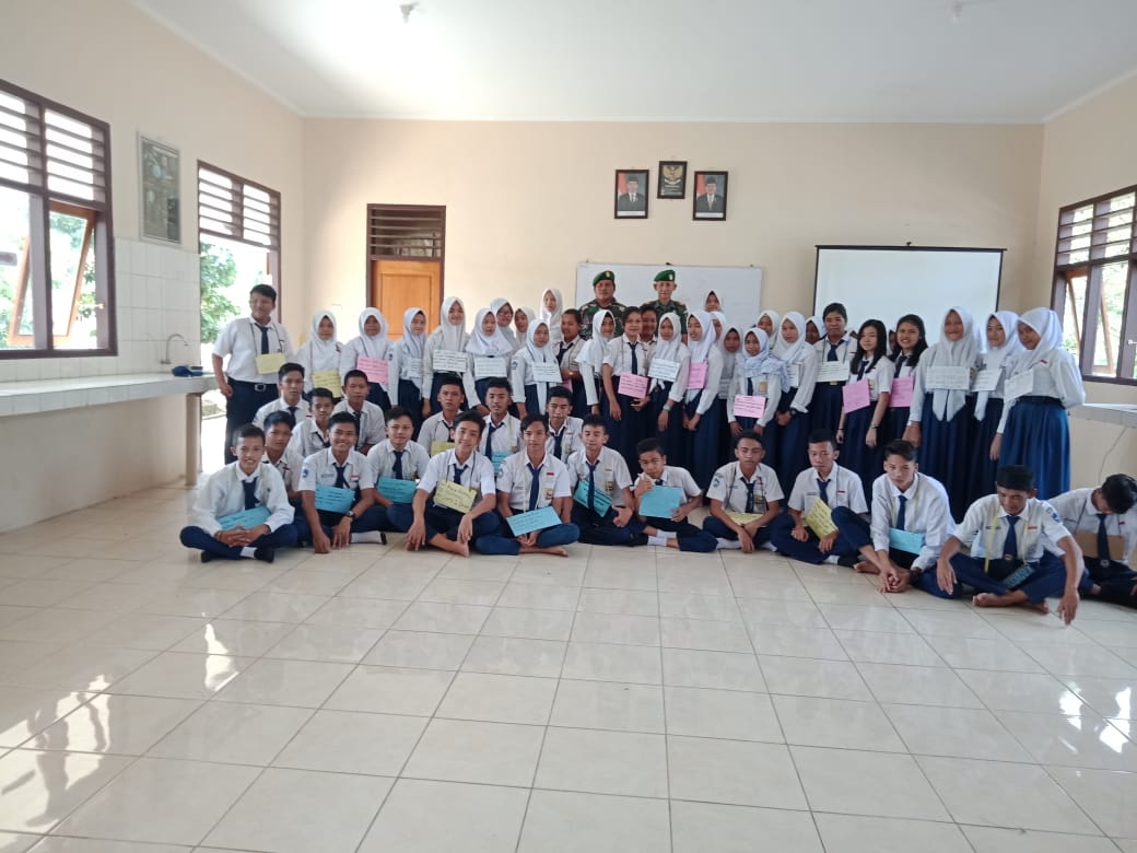 Danramil 414-05/Kelapa Kampit Kapten Inf Nasip Tanjung memberikan pencerahan pembekalan materi Bela Negara kepada 356 siswa siswi dan tenaga guru SMAN 1 DAMAR Kec DamarKab Belitung Timur (selasa17/07/2018)