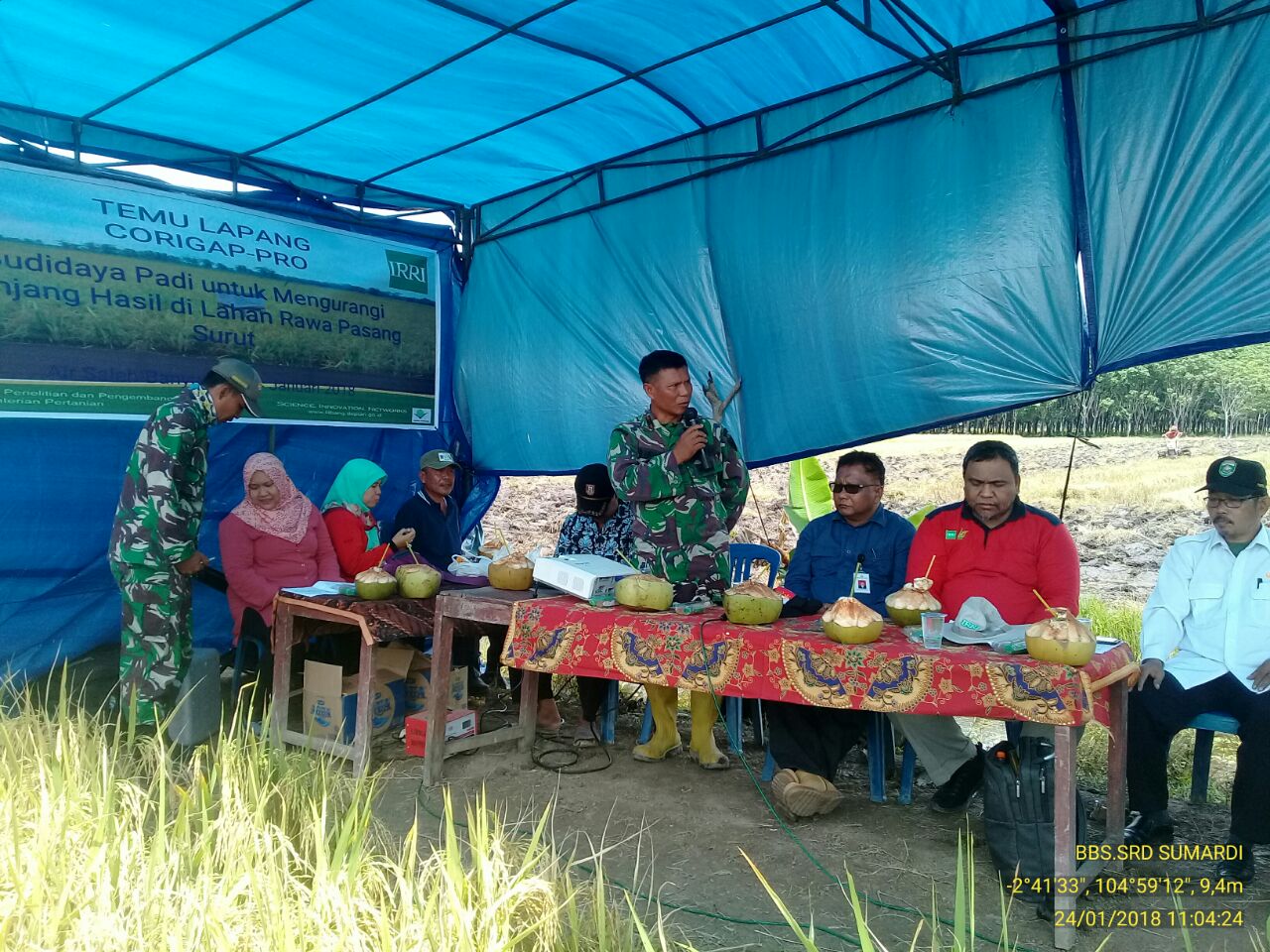 Bertempat di Desa Srimulyo, Kec. Air Salek, Kab. Banyuasin telah dilaksanakan kegiatan temu lapang Corigap-Pro inovasi tehnologi budidaya padi untuk mengurangi senjang hasil padi di lahan rawa pasang surut dilanjutkan panen padi seluas 10 Ha pada Rabu (24/1/2018).