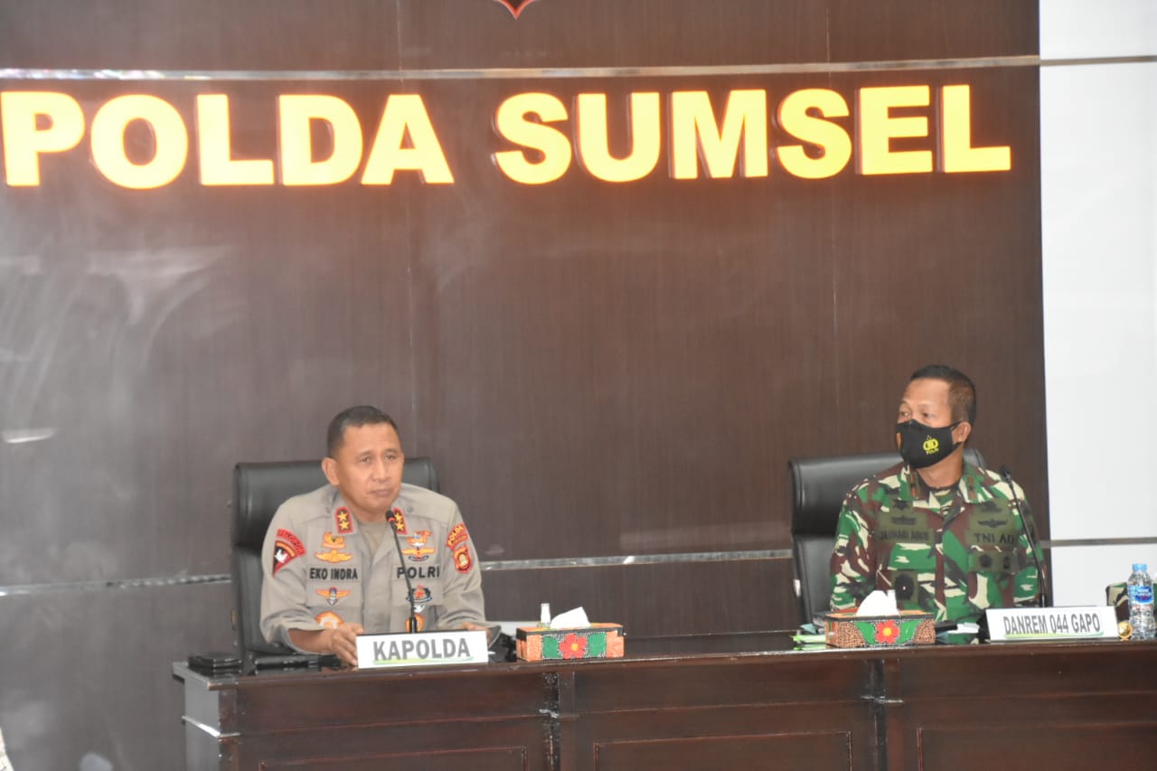 Kapolda Sumsel Irjen Pol. Prof. Dr. Eko Indra Heri S., M.M. dalam sambutannya menyampaikan bahwa Penanganan Covid 19 dan PPKM Mikro di kota Palembang ini pekerjaan kita bersama dalam penanganan Corona Virus apalagi dalam rangka menjelang Idul Adha ini, Kapolda menekankan harus ada kepedulian yang sama, Kita dulu menganggap india kekurangan oksigen, di sini kejadian di negara kita di rumah sakit kekurangan oksigen juga, dimana saat ini seluruh rumah sakit penuh dengan pasien Covid, kemudian masalah obat obatan banyak sekali pihak yang tidak bertangung jawab yang menjual belikan obat obatan diluar harga aslinya dan ini harus menjadi perhatian kita semua, serta dalam hal ini kita harus bersama-sama memantau PPKM diwilayah kota Palembang,”tegasnya.