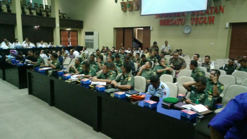 Komandan Korem 044/Gapo Kolonel Inf Kunto Arief Wibowo, S.IP. memimpin Rapat koordinasi Pengamanan VVIP kunjungan kerja Wakil Presiden RI H. Muhammad Jusuf Kalla dan rombongan ke Palembang dalam rangka meninjau kesiapan penyelenggaraan Asian Games 2018 di Kota Palembang Sumsel, Kamis (6/4/2017).