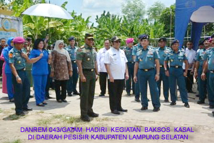 Danrem 043/Gatam, Kolonel Inf Joko P. Putranto, M.sc. Bersama Dandim 0421/Lamsel menyambut kunjungan kerja Kepala Staf Angkatan Laut ( Kasal ), Laksamana TNI Ade Supandi, S.E, M.A.P. di Desa Merak Belatung Kecamatan Kalianda Kabupaten Lampung Selatan Provinsi Lampung. Kunjungan Kerja Kasal kali ini dalam rangka meresmikan Bedah Desa Pesisir di wilayah Kabupaten Lampung Selatan yang sebelumnya dilaksanakan di Provinsi Banten, boleh dibilang pelaksanaan program ini di Provinsi Lampung seperti paket lengkap.