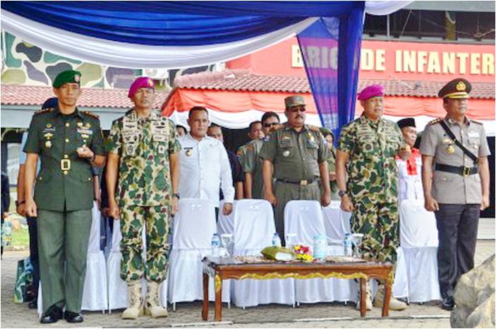 Komandan Korem 043/Garuda Hitam, Kolonel Kav Supriatna S,IP,MM Menghadiri Acara Sertijab Pucuk Pimpinan Komandan Brigade Infanteri (Danbrigif) 3 / Marinir Piabung Pesawaran, yang diserahkan kepada Kolonel Marinir Werijon yang akan digantikan oleh Kolonel Marinir Hermanto ,SE.MM yang dilaksanakan pada hari Rabu, tanggal 31 Agustus 2016.
