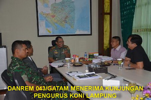 Komandan Korem 043/Gatam, Kolonel Inf Joko P. Putranto, M.Sc, Selasa (23/2/16) pukul 14.00 wib, menerima kunjungan Anggota KONI Provinsi Lampung Kunjungan dalam rangka silaturahmi dan saling berkoordinasi demi kemajuan atlit-atlit Lampung yang dilaksanakan di Ruang Kerja Danrem. Turut hadir pada acara tersebut Kasrem 043/Gatam, Letnan Kolonel Inf Utten Simbolon.