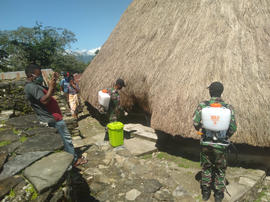 “Penyemprotan disinfektan di Desa Kewar menyasar fasilitas umum seperti kantor desa, rumah adat, warung serta rumah-rumah warga,” paparnya.