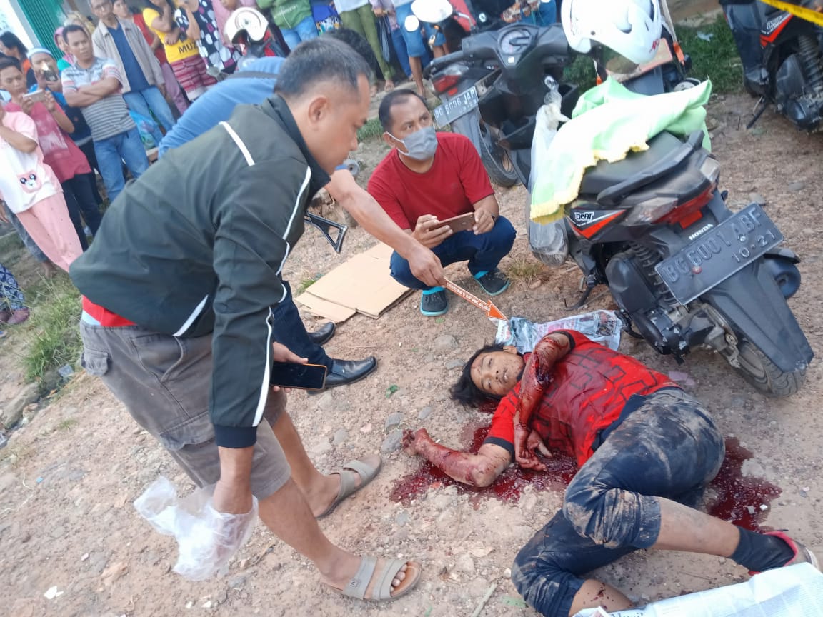 Alex (30) warga Kelurahan Sukamoro, Kecamatan Talang Kelapa, Banyuasin, tewas tersungkur dengan luka bacokan di leher, Rabu (31/7/19) peristiwa pengeroyokan diduga dilakukan oleh empat orang tersebut terjadi di Pasar Megah Asri, Kelurahan Sukajadi, Kecamatan Talang Kelapa, Banyuasin.