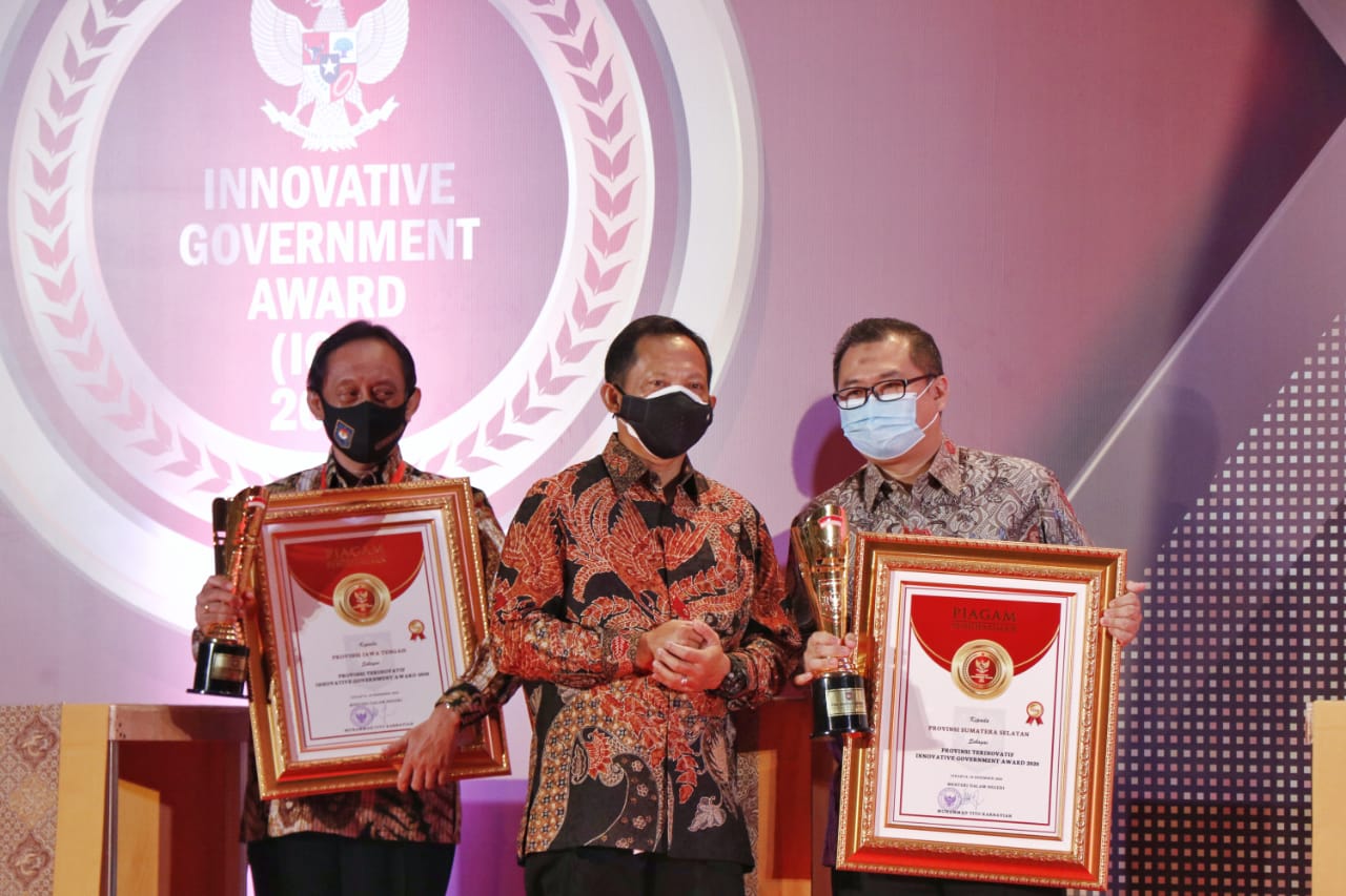 Sumsel dinobatkan sebagai Provinsi Terinovatif Tahun 2020 bersama empat provinsi terkemuka lainnya seperti Provinsi Jawa Tengah, Provinsi Lampung, Provinsi DKI Jakarta, dan Provinsi Banten. Penghargaan tersebut diserahkan langsung oleh Menteri Dalam Negeri Prof. Drs. H. Muhammad Tito Karnavian, M.A., Ph.D., kepada Gubernur Sumsel H.Herman Deru melalui Asisten III Bidang Administrasi dan Umum Setda Pemprov Sumsel Prof Dr H.M Edwar Juliartha, MM.