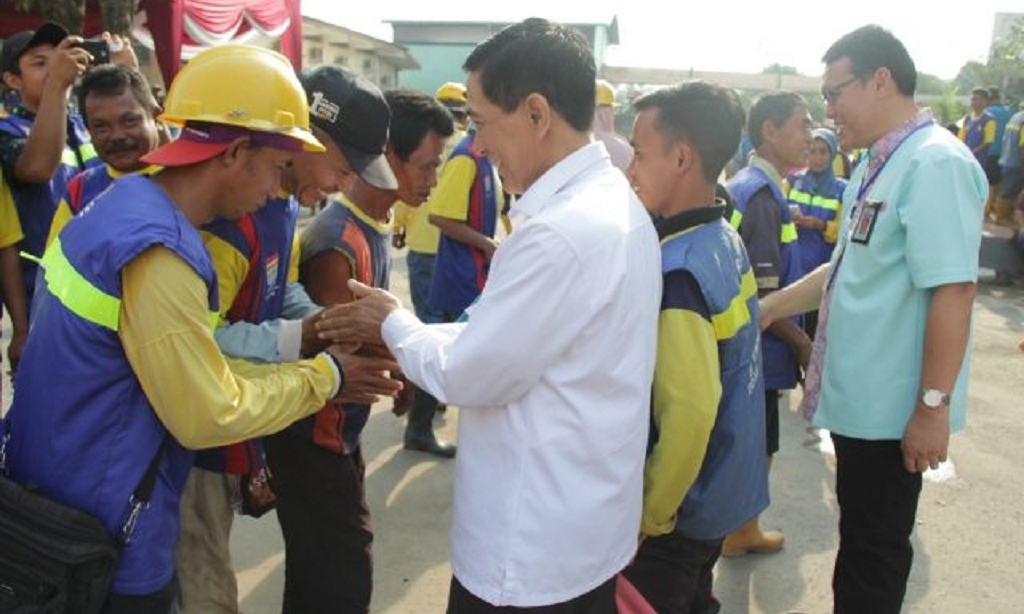 Usai memimpin apel pagi di kantor PUPR Kota Palembang, secara simbolis Penjabat (Pj) Walikota Palembang, Akhmad Najib didampingi Kepala Dinas PUPR Kota Palembang, Bastari membuka acara pemotongan dan pembagian daging hewan kurban.