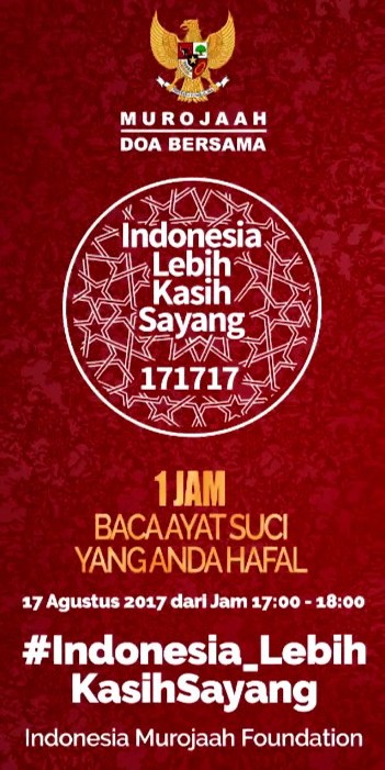 Sebagai ungkapan rasa syukur atas nikmat kemerdekaan yang telah kita nikmati selama 72 tahun, Markas Besar TNI dan seluruh satuan TNI di Indonesia serta di semua tempat ibadah termasuk di wilayah Kodam II/Swj akan menggelar Murojaah doa bersama secara serentak pada tanggal 17 Agustus 2017 selama 1 jam (pukul 17.00 s.d 18.00 Waktu Setempat).