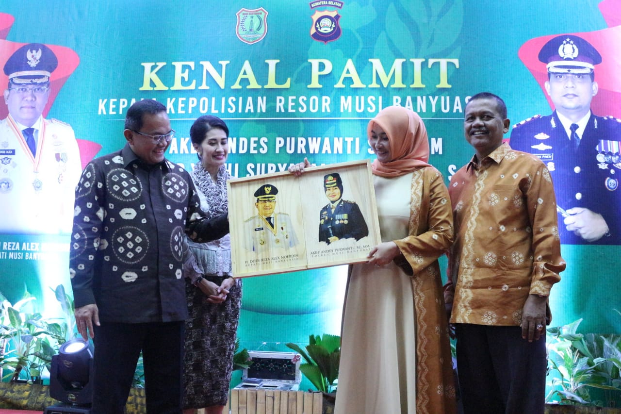 Acara kenal pamit Kepala Kepolisian Resor Musi Banyuasin, Rabu (4/9/2019) malam, berlangsung khidmat. Pisah sambut yang dilaksanakan di Pendopoan Griya Bumi Serasan Sekate tersebut di hadiri Bupati Muba H Dodi Reza Alex, Wakil Bupati Muba Beni Hernedi, Sekretaris Daerah Kabupaten Muba Drs H Apriyadi MSi, Kasdim 0401 Muba Mayor Inf M Daud, dan para Kepala Perangkat Daerah Muba.