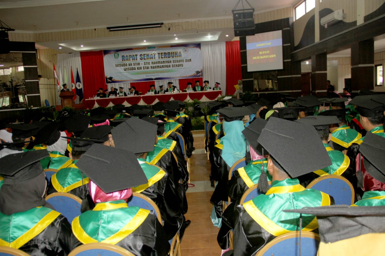 Sidang Senat Terbuka Wisuda ini, dipimpin langsung Ketua Sekolah Tinggi Ilmu Hukum Rahmaniyah, Dr Wandi Subroto SH MH. Turut hadir Bupati Muba H Dodi Reza Alex Noerdin diwakili Staf Ahli Bupati Bidang Politik, Hukum dan Pemerintahan Drs H M Sayuti MSi, Perwakilan Pimpinan FKPD, dan OPD Muba, Kasubag Sistem informasi dan Kerjasama LLDIKTI Irsan ST, Sekretaris Kopertis Wilayah Wilayah VII Sumbagsel Drs Herizal MA, Segenap Senat Rahmaniyah Sekayu, Pengurus Yayasan Rahmaniyah Sekayu serta orangtua dari Wisudawan-Wisudawati.
