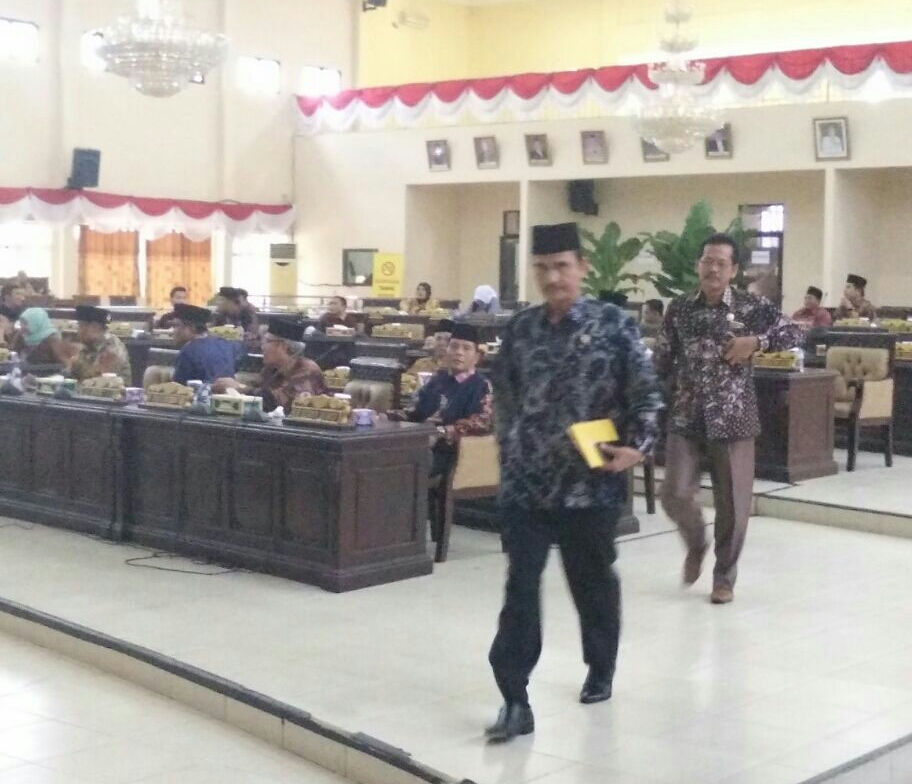 Paripurna laporan komisi-komisi terhadap APBD Perubahan 2017 di gedung Paripurna Jum’at (29/9). Fraksi Partai Amanat Nasional (PAN) kembali walk out (wo) ketika sidang sudah dibuka oleh ketua DPRD Agus Salam, SH. Kemudian melalui Ahmad Yani melakukan interupsi sembari menyampaikan pendapat dan menganggap bahwa paripurna tidak Syah lalu seluruh anggota fraksi PAN langsung keluar meninggalkan ruang sidang.