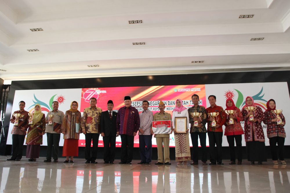 Dalam acara tersebut diberikan tali kasih kepada 723, Legiun Veteran sebesar Rp 1,3 miliar, juga kepada juara olahraga tingkat SMA, SMP, SD. Untuk perlombaan kebersihan tingkat kantor direbut oleh, Dinas Pendapatan Daerah Prov Sumsel, Juara 2 Badan Lingkungan Hidup Sumsel, Juara 3 Badan Penanggulangan Bencana Daerah (BPBD) Sumsel.(rilis)