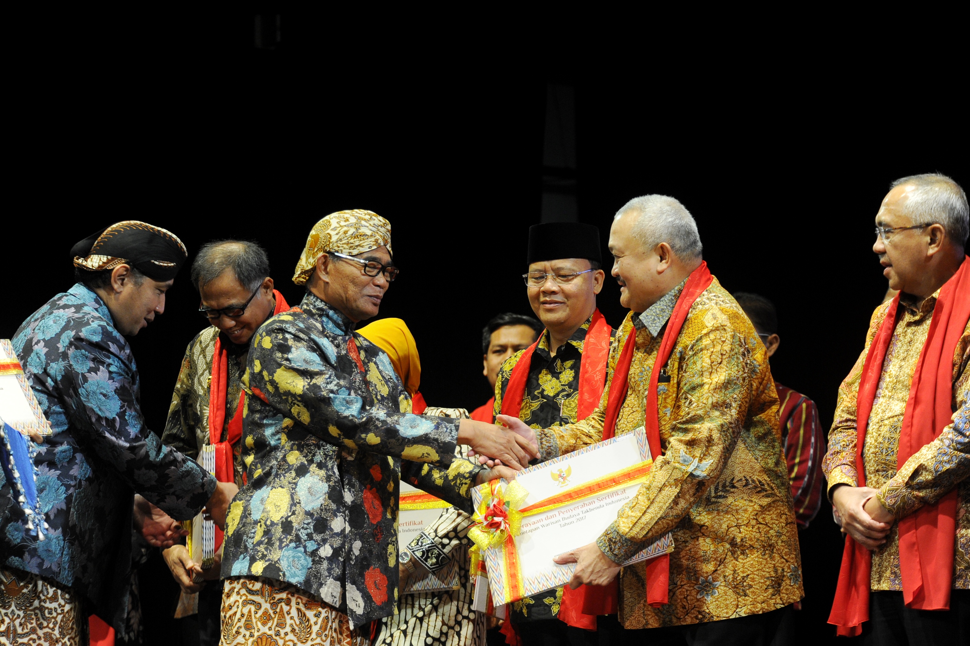 Penyerahan sertifikat warisan tak benda Indonesia ini diserahkan langsung oleh Menteri Pendidikan Dan Kebudayaan Muhadjir Effendy. Kegiatan penyerahan ini dilakukan agar Gubernur, kepala daerah di Provinsi maupun daerah bisa selalu melestarikan pelestarian dengan cara melindungi, mengembangkan, dan memanfaatkan warisan budaya tak benda tersebut sebagai kekuatan budaya dalam pembangunan yang berkelanjutan.