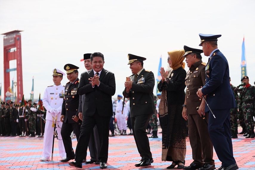 PALEMBANG, Halosumsel- Gubernur Sumsel H. Herman Deru menghadiri upacara peringatan hari ulang tahun (HUT) ke-77 TNI, yang dipusatkan di pelataran Benteng Kuto Besak (BKB), Rabu (5/10) pagi.