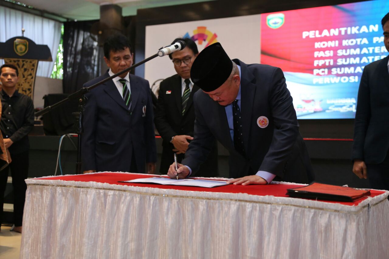 Gubernur Sumatera Selatan sekaligus Ketua Umum KONI Provinsi Sumatera Selatan Alex Noerdin mengukuhkan dan secara resmi melantik pengurus KONI kota Palembang Masa Bakti 2017-2021.