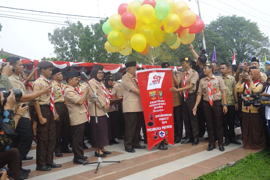 Selaku Ketua Majelis Pembimbing Gerakan Pramuka Sumsel, Alex Noerdin juga menyampaikan ucapan selamat memperingati hari ulang tahun ke-57 seluruh anggota Gerakan Pramuka. “Peringatan hari ulang tahun Pramuka ke-57 harusnya tanggal 14 Agustus karena ada Asian Games diundur menjadi hari ini,” terangnya.