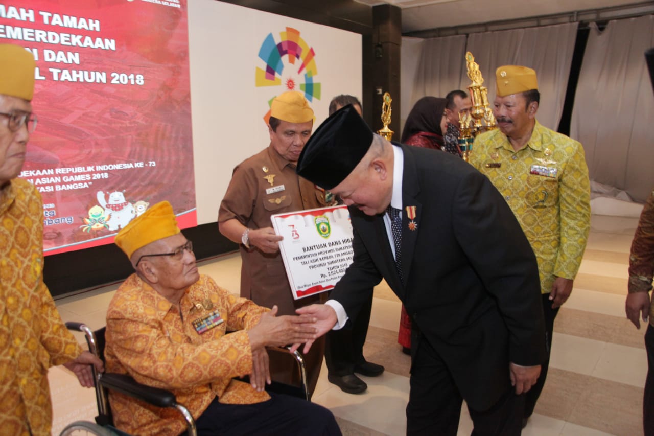 Gubernur Sumatera Selatan Alex Noerdin menggelar Resepsi Kenegaraan dengan para Pejuang Perintis Kemerdekaan Prov. Sumsel sekaligus memperingati Hari Veteran Nasional tahun 2018 di Griya Agung, Jumat (17/8).